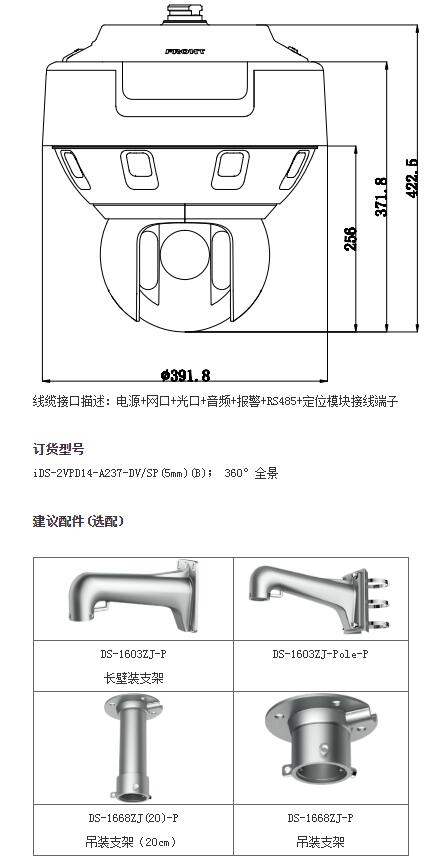 星光級360°全景一體式網(wǎng)絡(luò)高清紅外智能球機(iDS-2VPD14-A237-DV/SP(5mm)(B))
